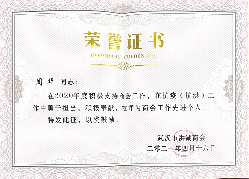 董事长周华评选为2024年度武汉建筑装饰行业优秀企业经理